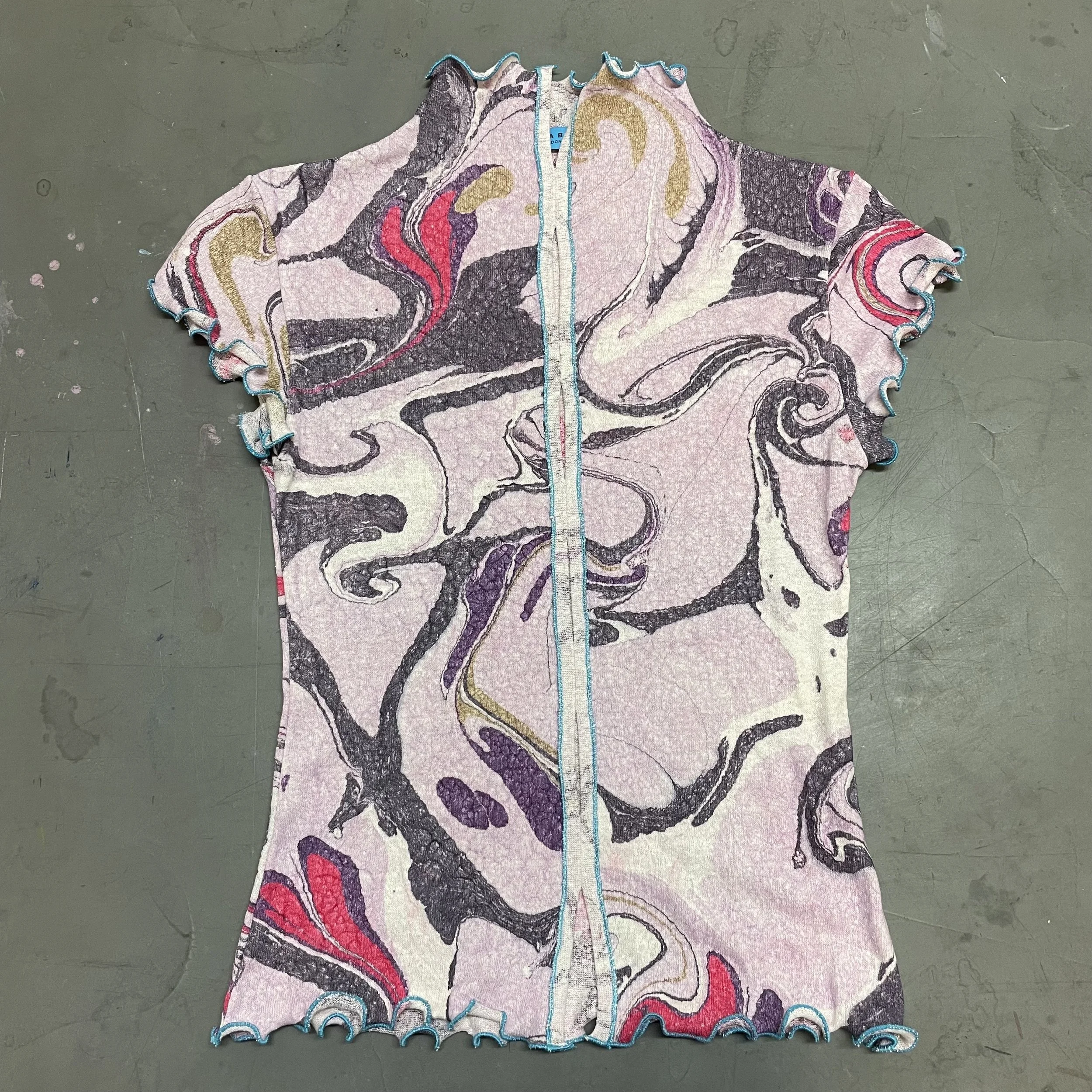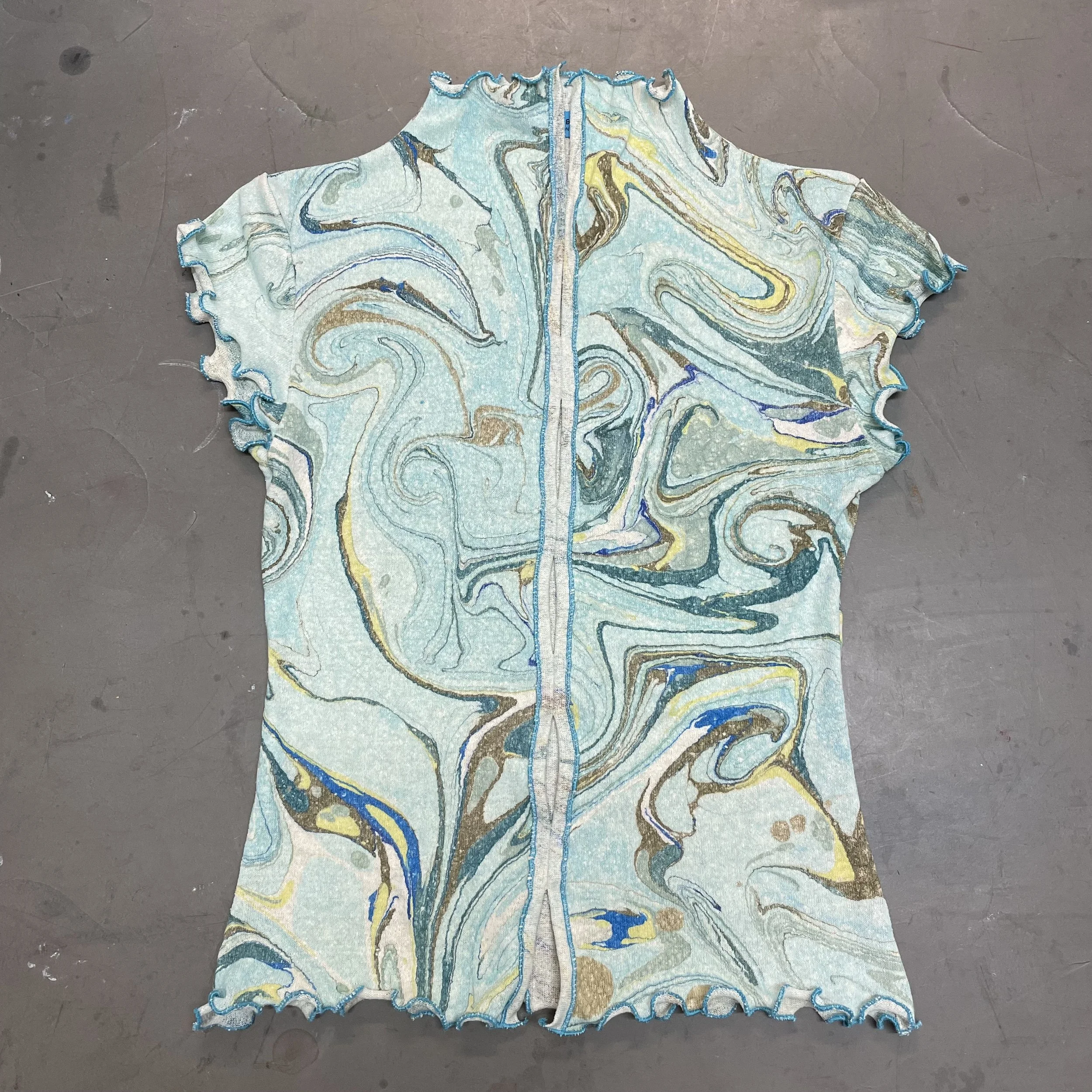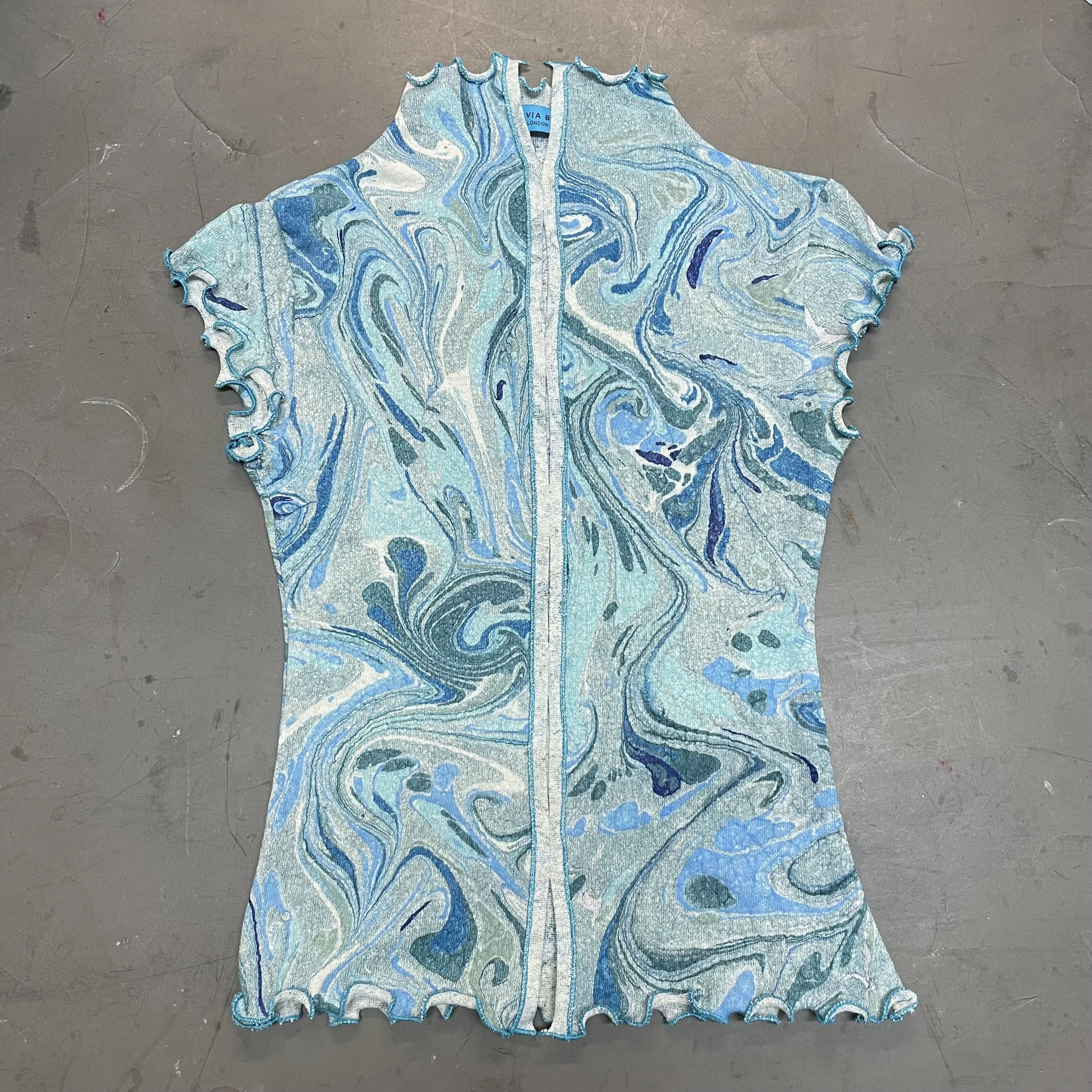 A selection of hand marbled garments I created made to order for the customer. Each of these is either knitted in merino wool or cut and 100% silk jersey. There are no two pieces the same, a version of luxury I want to promote.